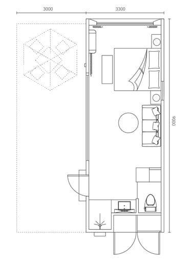 Size : 9.0 m x 3.3 m x 3.3m